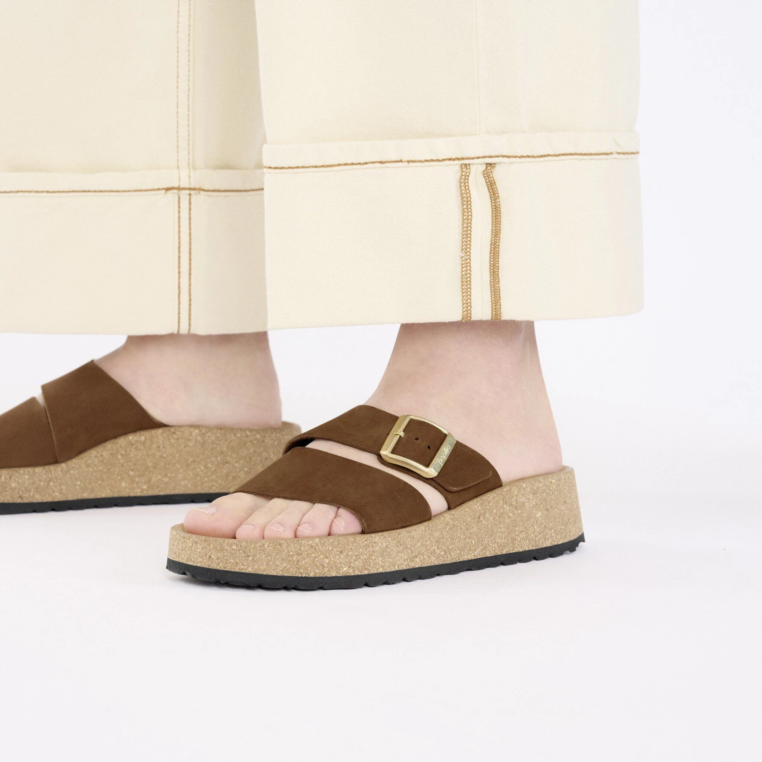 - Contoured cork-latex footbed