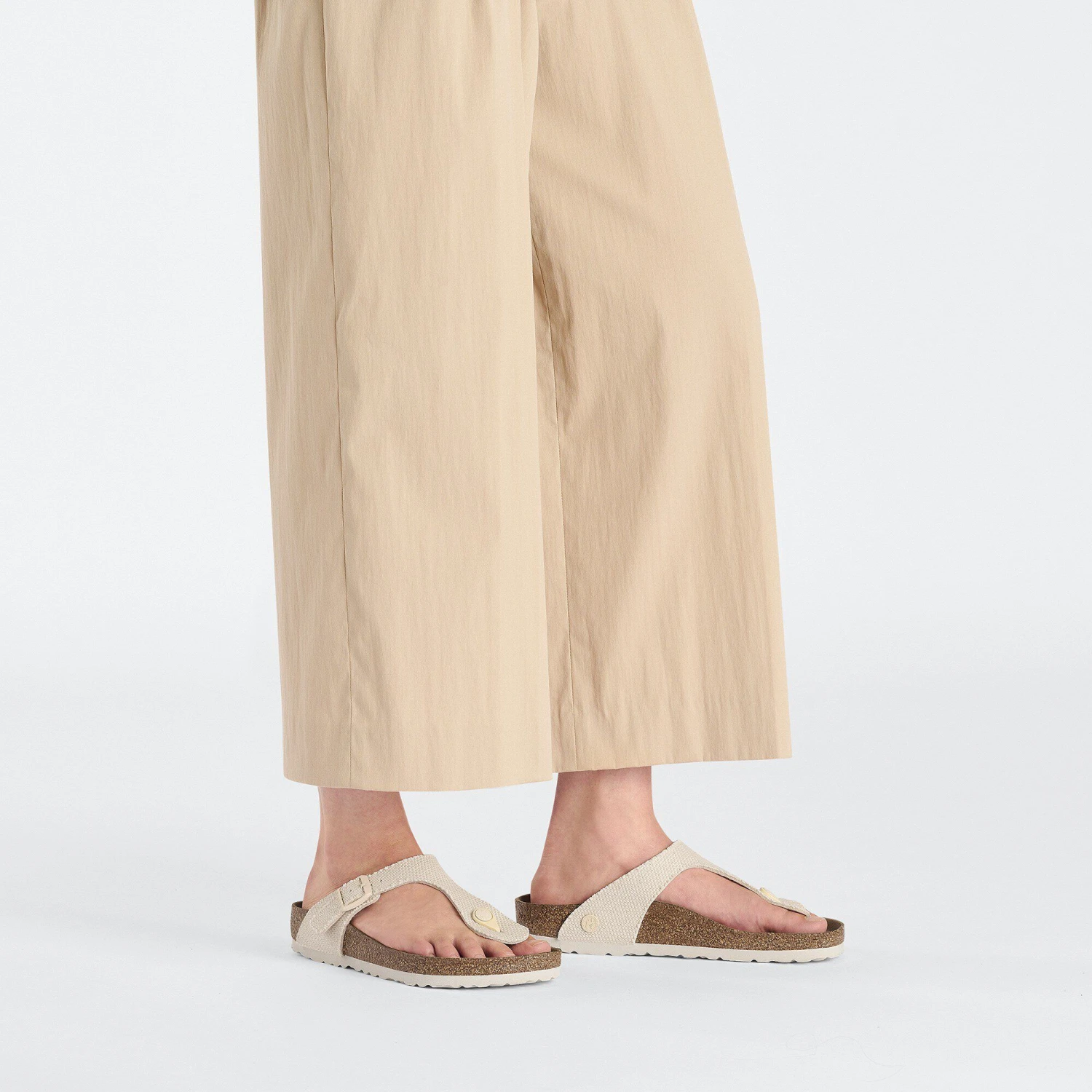 - Thong style with embossed metal pin buckle