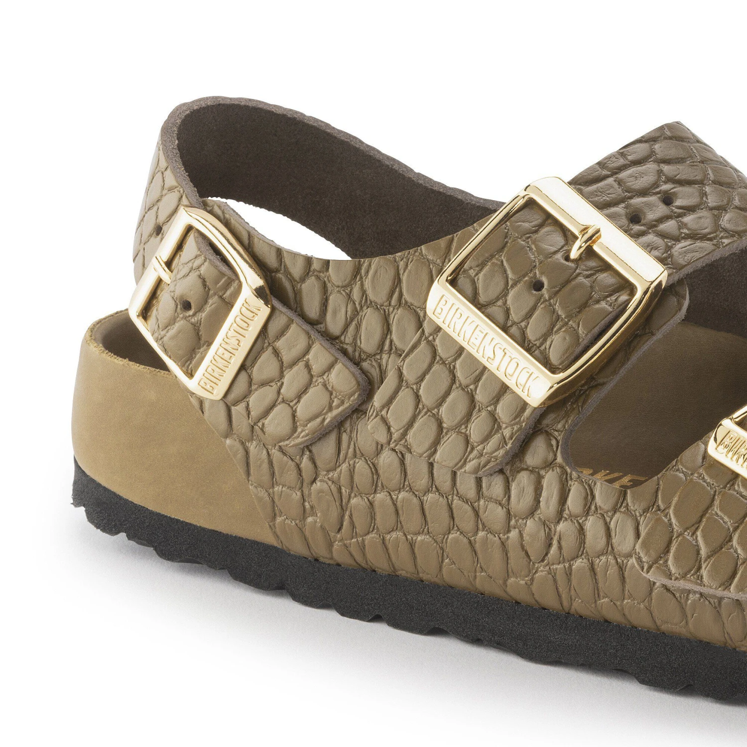 The footbed liner and outer edge of the footbed of BIRKENSTOCK Exquisite models are wrapped in very soft and supple nappa leather.