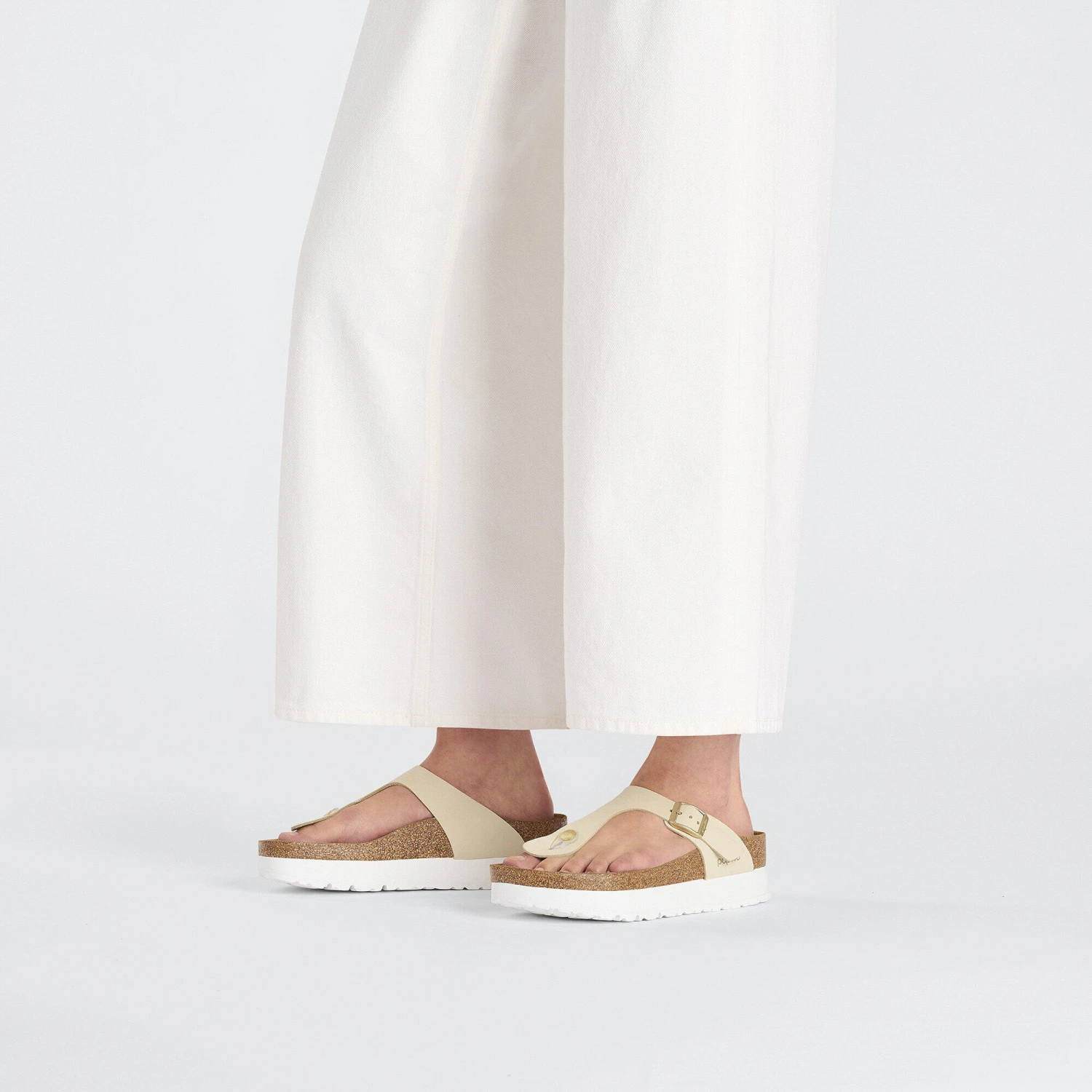 - Thong style with adjustable metal pin buckle